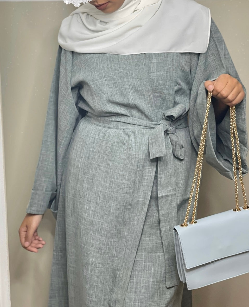 Faite d’un tissu lin gris chiné très tendance dans les pays du moyen orient , vous serez vous démarquer en toute simplicité .