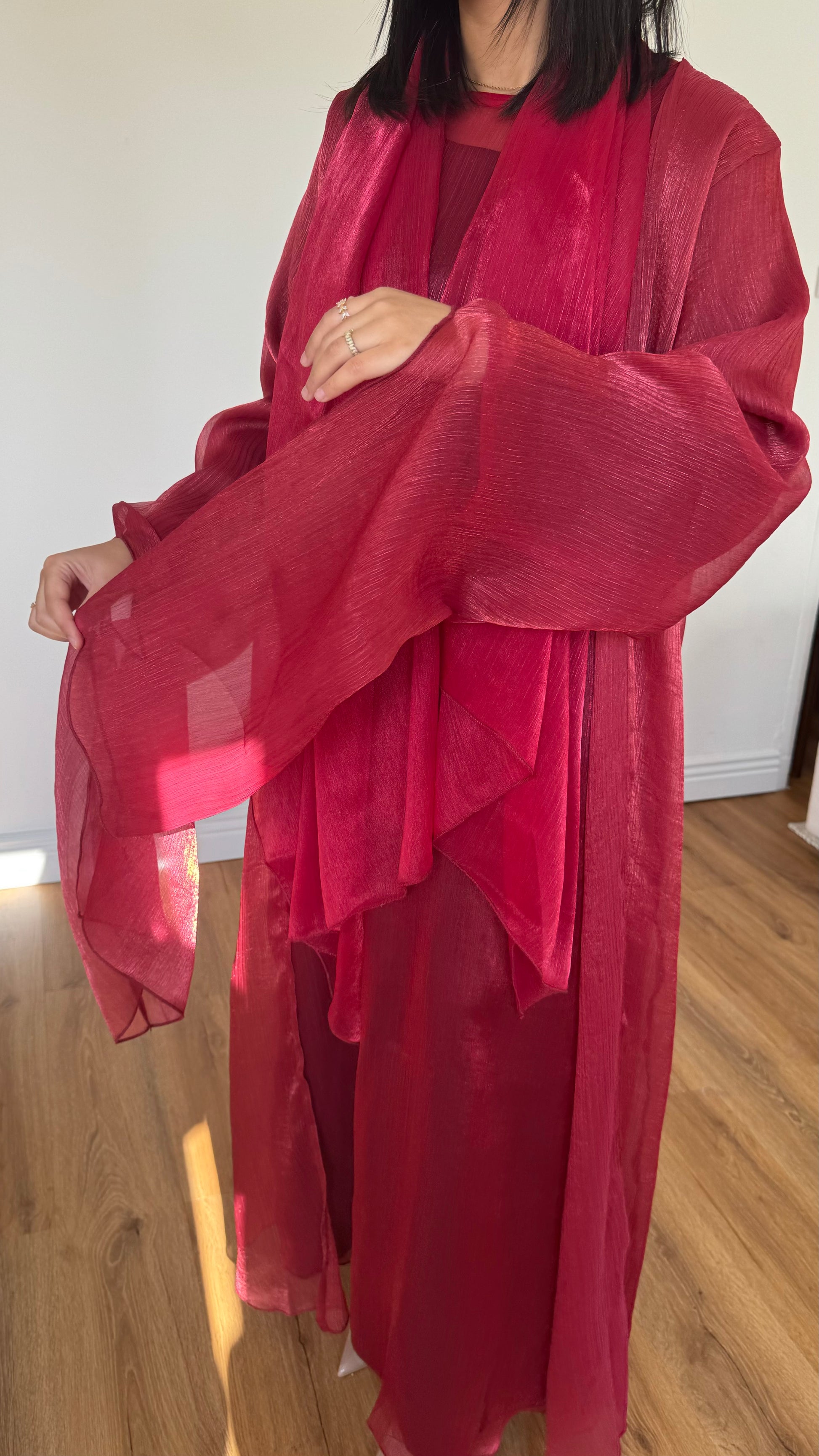 • Composition : Sous-robe en organza et kimono assorti.
