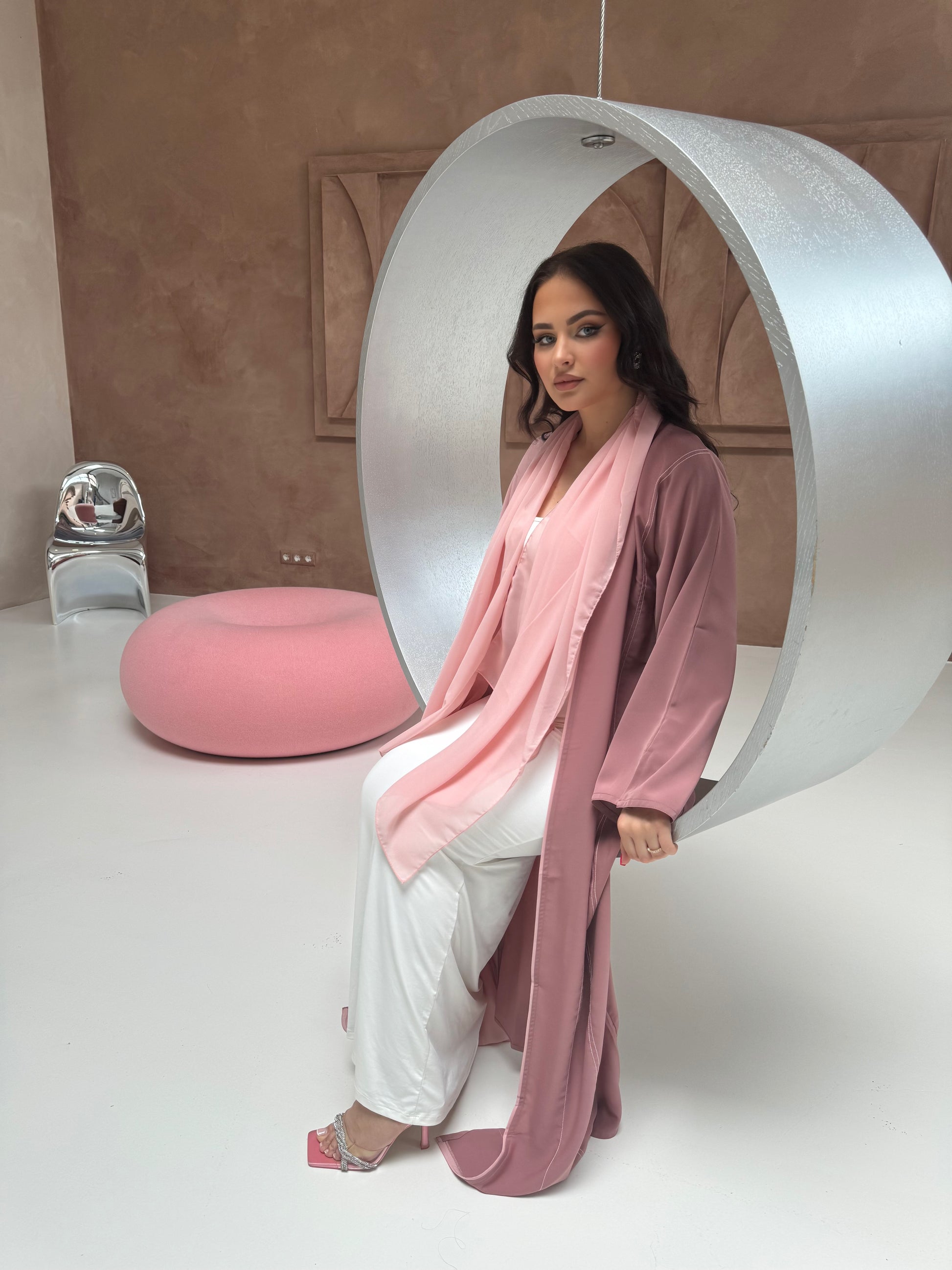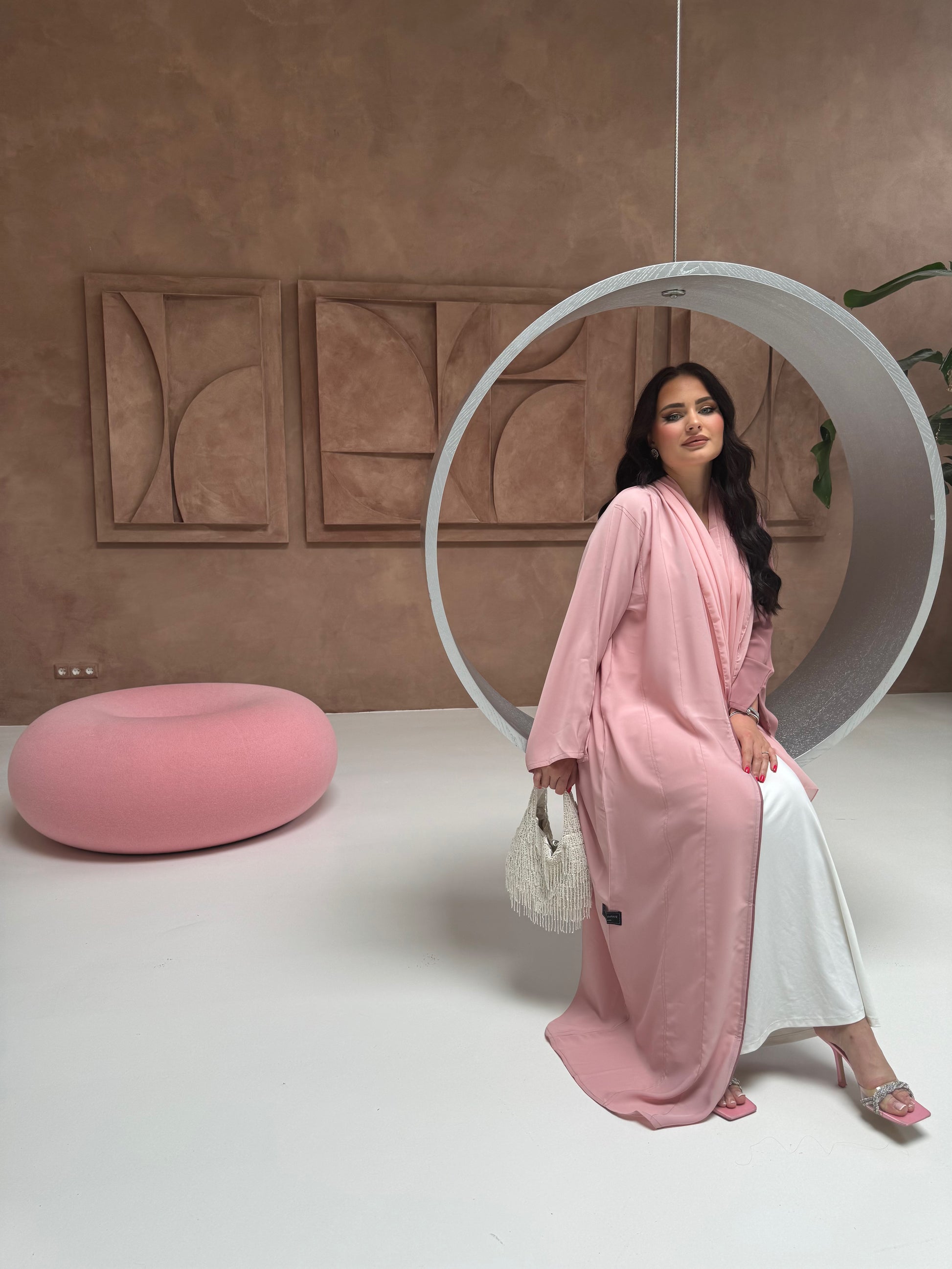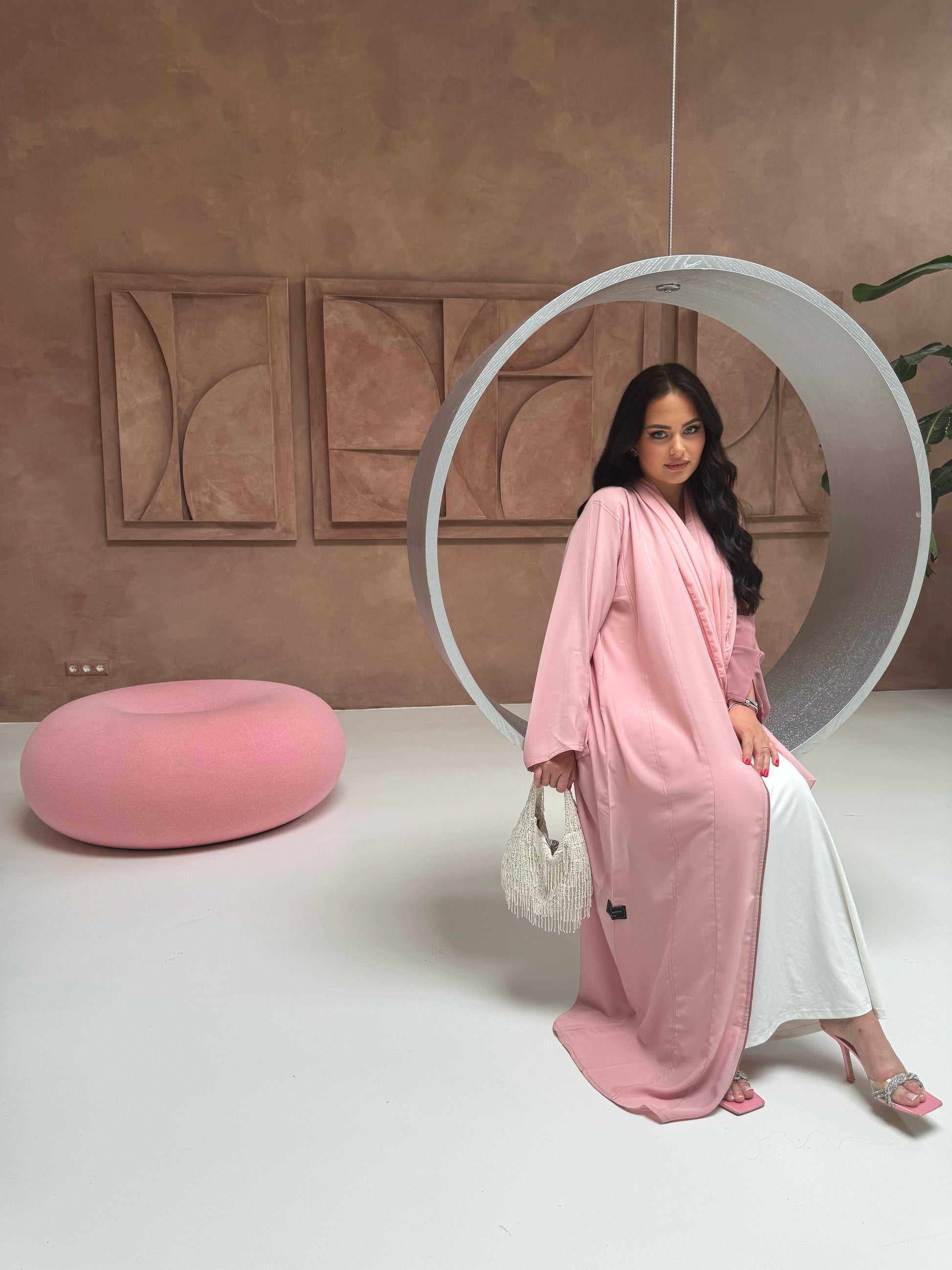 Design bicolore unique : cette abaya se distingue par sa moitié rose foncée et l'autre moitié rose clair, créant un contraste harmonieux .