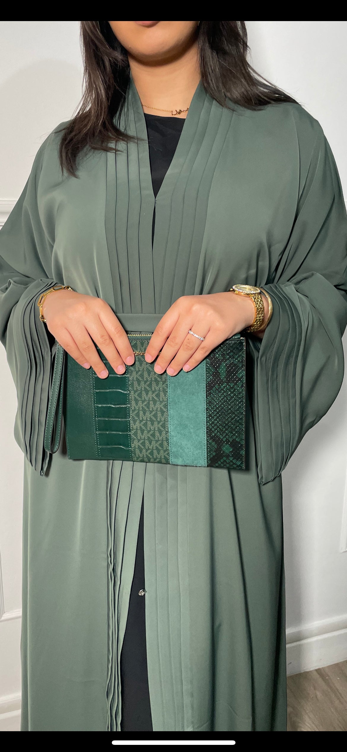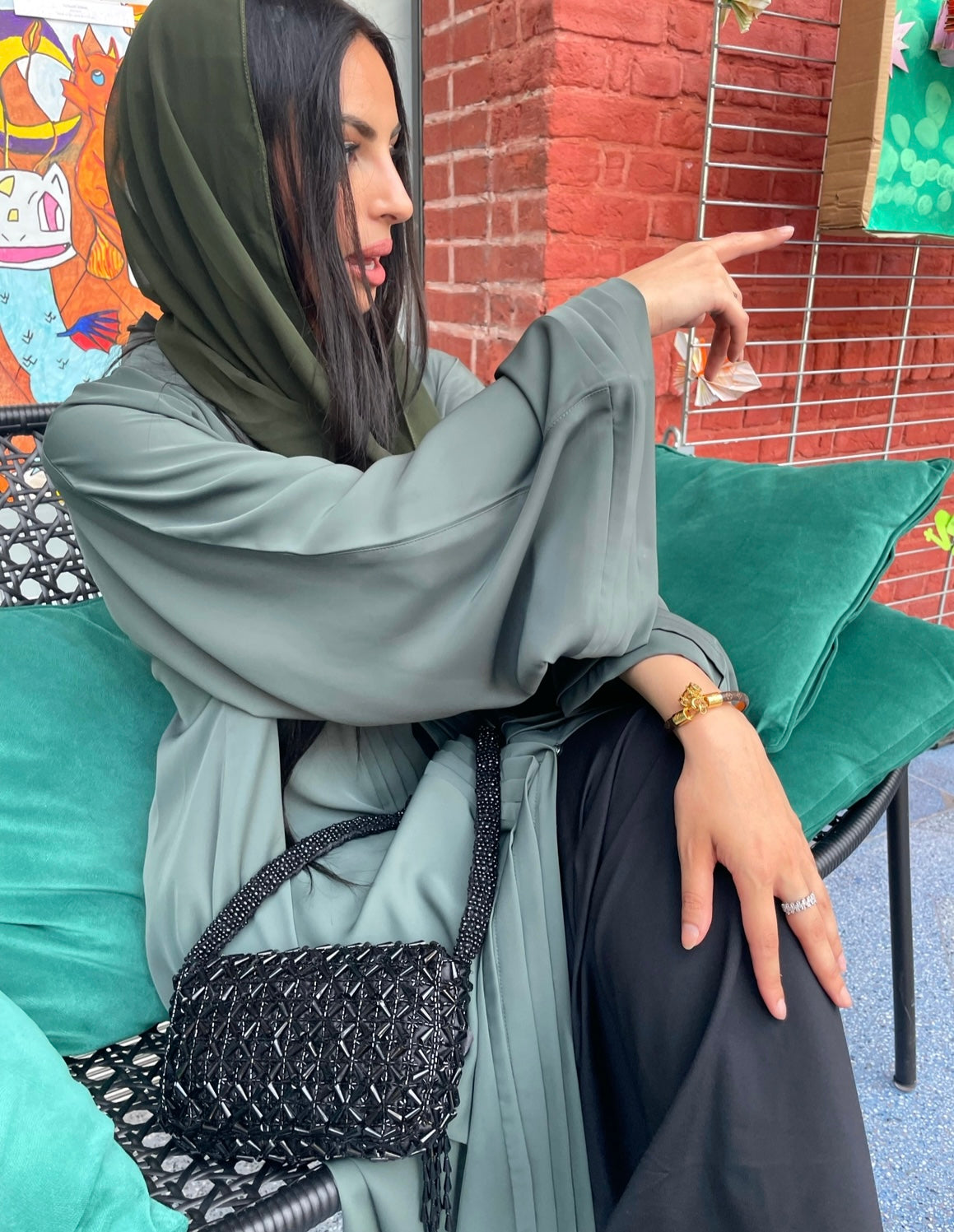 Faite d’un tissu Nida très fluide et d’une couleur vert foncé, la Abaya QAMAR peut être portée dans n’importe quelle occasions .