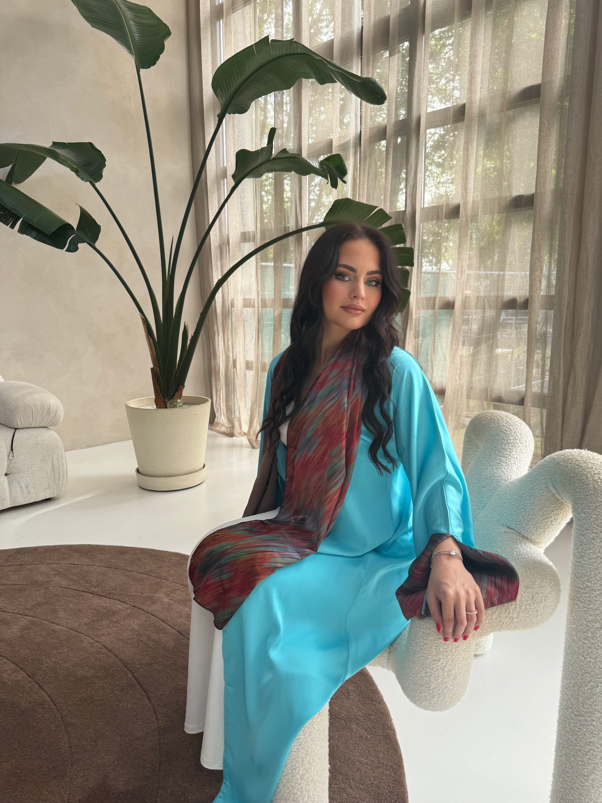 Élevez votre style avec notre abaya en satin fluide bleu ciel, une pièce élégante qui combine raffinement et audace. Confectionnée dans un satin doux et léger, cette abaya glisse sur la peau avec une fluidité qui évoque le luxe et le confort. Sa teinte bleu ciel, douce et apaisante, ajoute une touche de fraîcheur et de modernité à votre garde-robe.